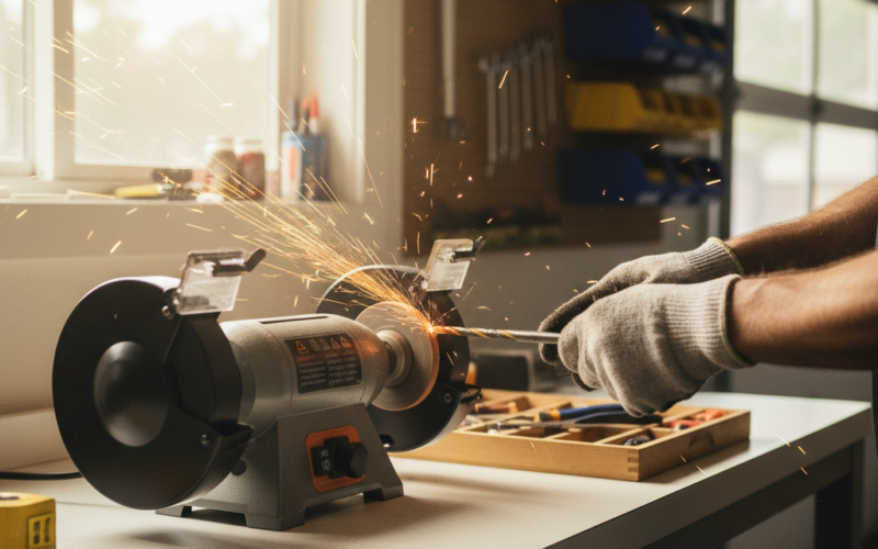 - Точильный станок (точило) — классика, позволяет выставить правильный угол, лучше всего для диаметра свыше 3 мм.