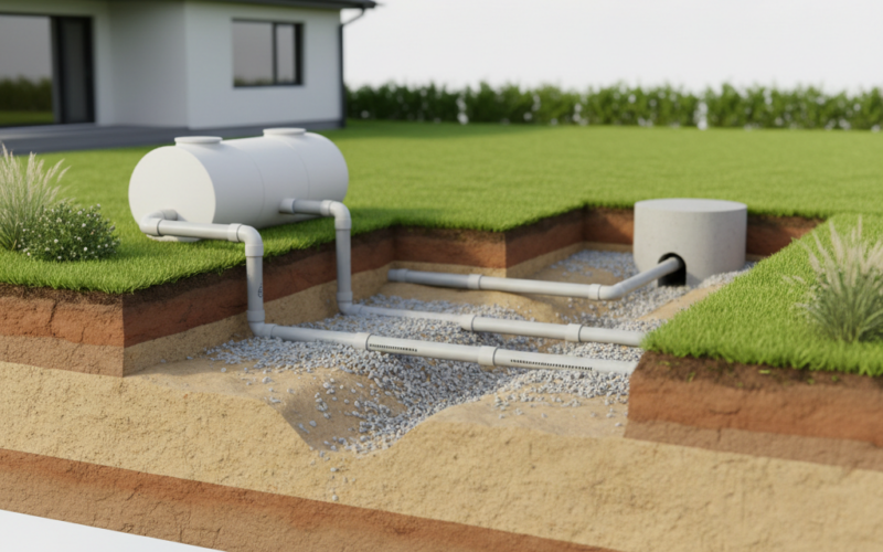 В наших широтах монтаж септика и дренажа нужно делать с запасом по глубине — закладывайте трубы ниже промерзания (обычно 1.2–1.8 м). Совет: всегда утепляйте наружную часть труб, особенно в зонах выхода стоков. Не уверены — делайте гидравлический расчёт, а из простого — уклон не менее 2%. Если уровень грунтовых вод меняется по сезонам — закладывайте аварийный перелив или резервная емкость.